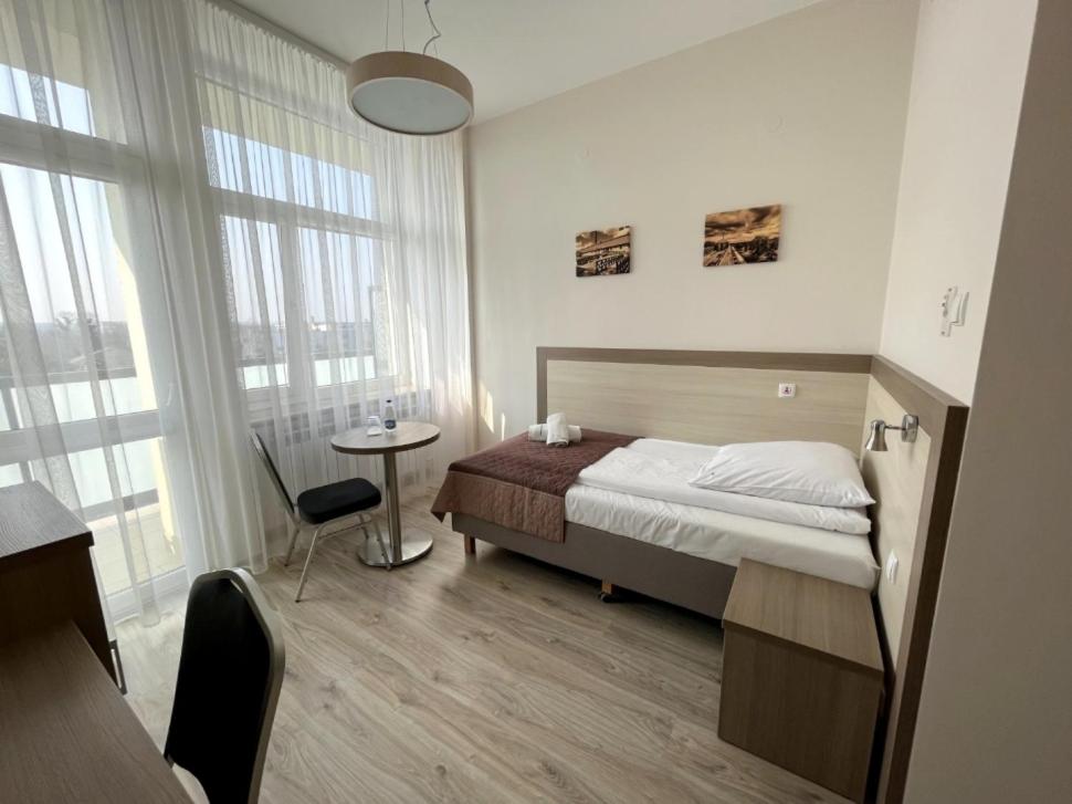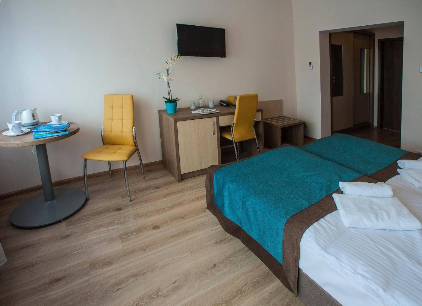 Pokój z 2 łóżkami pojedynczymi. Ten klimatyzowany pokój z 2 łóżkami pojedynczymi wyposażony jest w telewizor, lodówkę oraz czajnik elektryczny. Pokój z 2 łóżkami pojedynczymi - 2 osobowy. Powierzchnia pokoju ok.: 17 mkw. ;