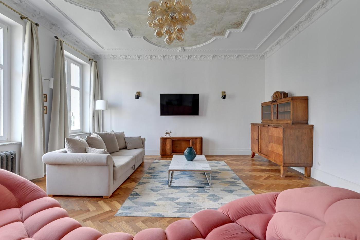 Apartament z 3 sypialniami. This spacious apartment consists of 1 living room, 3 separate bedrooms and 2 bathrooms with a walk-in shower and free toiletries. In the well-fitted kitchenette, guests will find a stovetop, a refrigerator, a dishwasher and kitchenware. Featuring a balcony, this apartment also provides a washing machine, a private entrance and a flat-screen TV with streaming services. The unit offers 4 beds. Apartament - 8 osobowy. Powierzchnia pokoju ok.: 150 mkw.