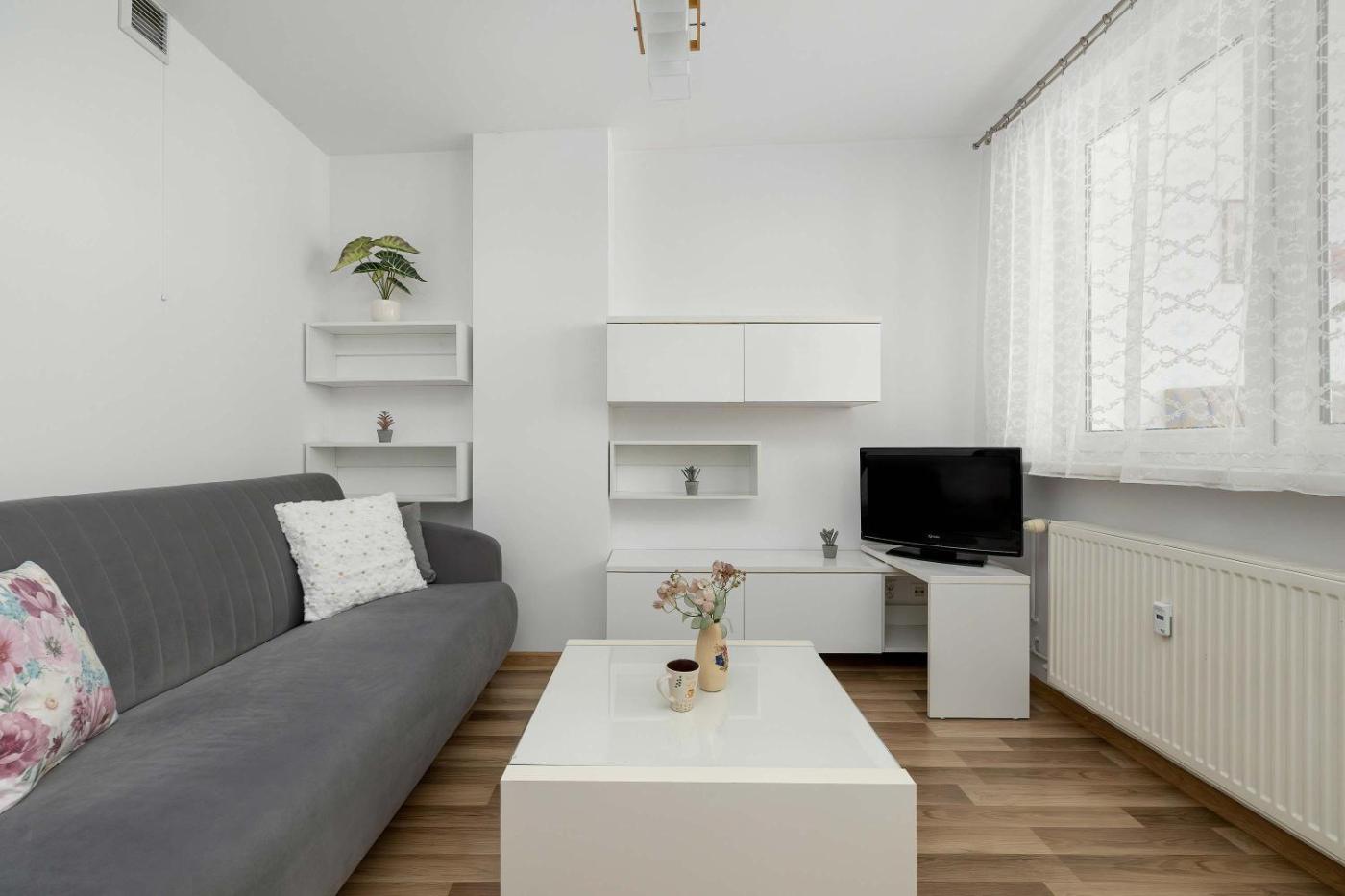 Apartament z 1 sypialnią. Boasting a private entrance, this apartment comes with 1 living room, 1 separate bedroom and 1 bathroom with a shower and a hairdryer. The fully equipped kitchenette has a stovetop, a refrigerator, kitchenware and an oven. The apartment features parquet floors, a seating area with a flat-screen TV, a washing machine, a tea and coffee maker as well as city views. The unit has 2 beds. Powierzchnia pokoju ok.: 37 mkw.