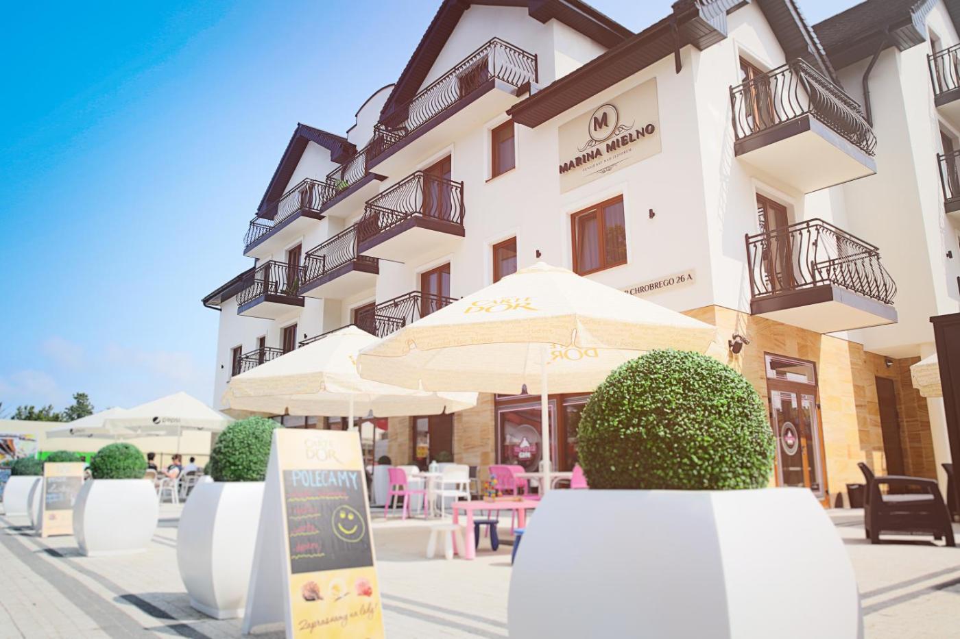 Obiekt Marina Mielno z widokiem na jezioro jest usytuowany nad jeziorem Jamno w Mielnie, 550 metrów od plaży nad Bałtykiem. Na miejscu znajduje się plac zabaw i kącik dla dzieci. Dysponująca 2 tarasami restauracja Biała Dama oferuje śniadanie i kolację w formie bufetu, a także dania do wyboru z karty. Do dyspozycji Gości jest też prywatny parking.