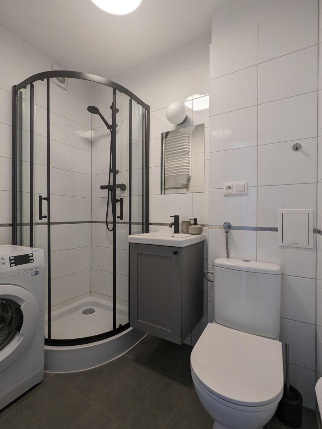 Apartament z 1 sypialnią. The apartment has 1 bedroom and 1 bathroom with a shower and bathrobes. In the fully equipped kitchenette, guests will find a stovetop, a refrigerator, a dishwasher and kitchenware. This apartment features a washing machine, a tea and coffee maker, flat-screen TV with streaming services, as well as chocolate for guests. The unit has 1 bed. Apartament - 2 osobowy. Powierzchnia pokoju ok.: 28 mkw.