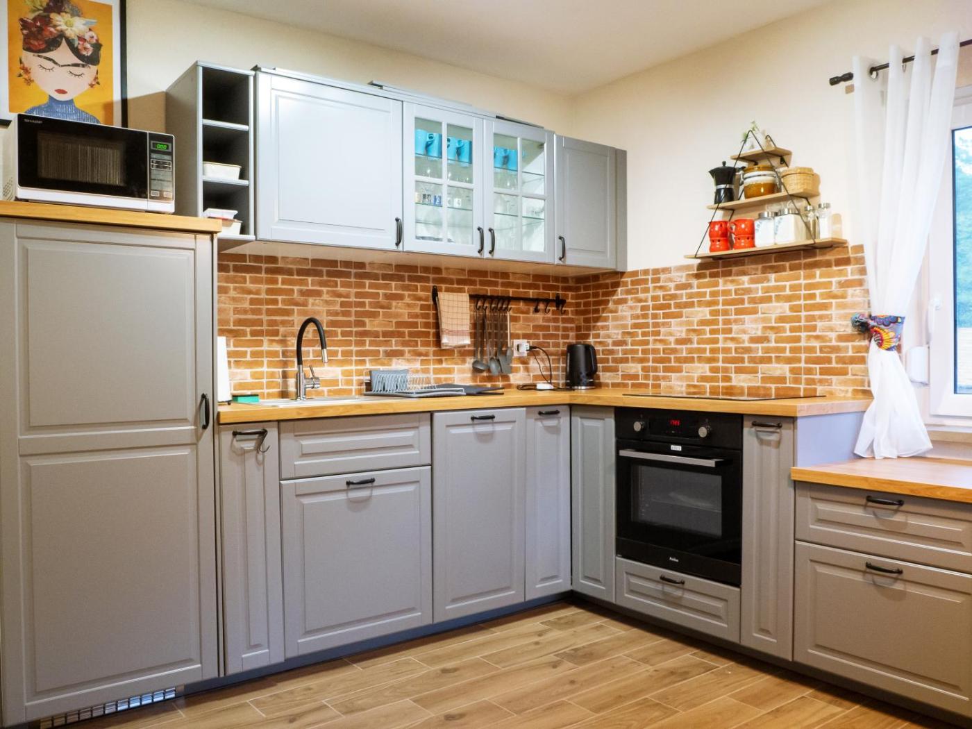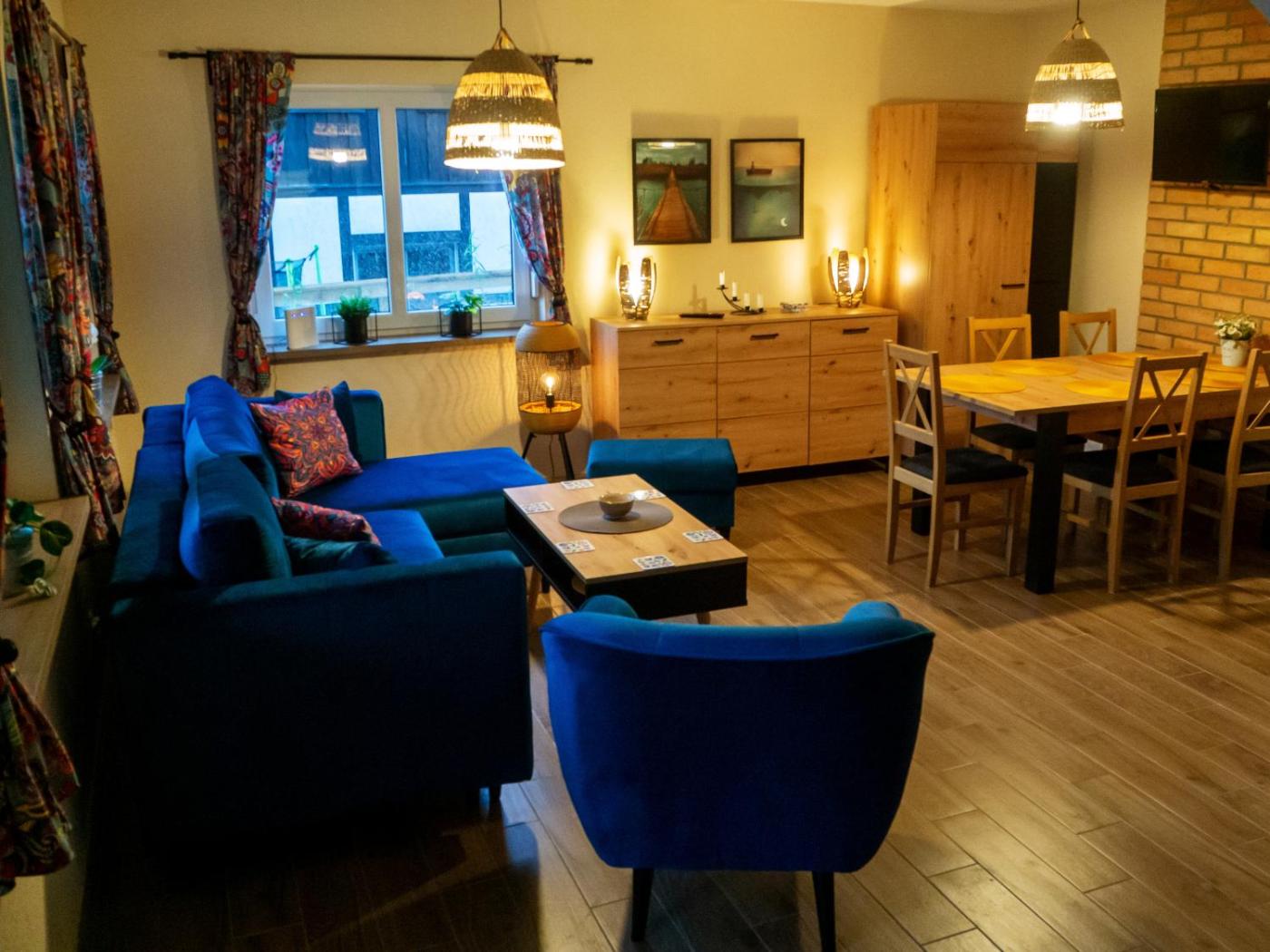 Willa. Guests will have a special experience as this villa provides a fireplace. Boasting a private entrance, this villa includes 1 living room, 4 separate bedrooms and 2 bathrooms with a walk-in shower and a hairdryer. Guests will find a stovetop, a refrigerator, a dishwasher and kitchenware in the well-fitted kitchen. The villa also features a barbecue. Featuring a terrace with garden views, this villa also offers a washing machine and a flat-screen TV. The unit has 7 beds. Willa - 8 osobowy. Powierzchnia pokoju ok.: 90 mkw.